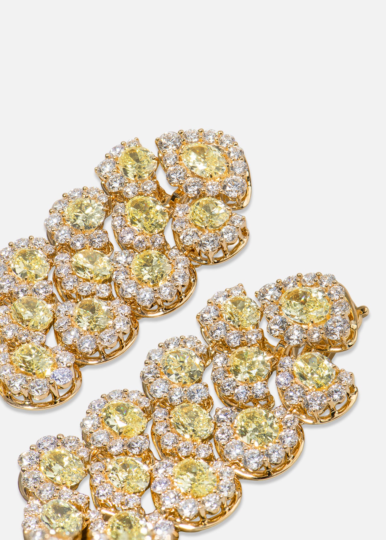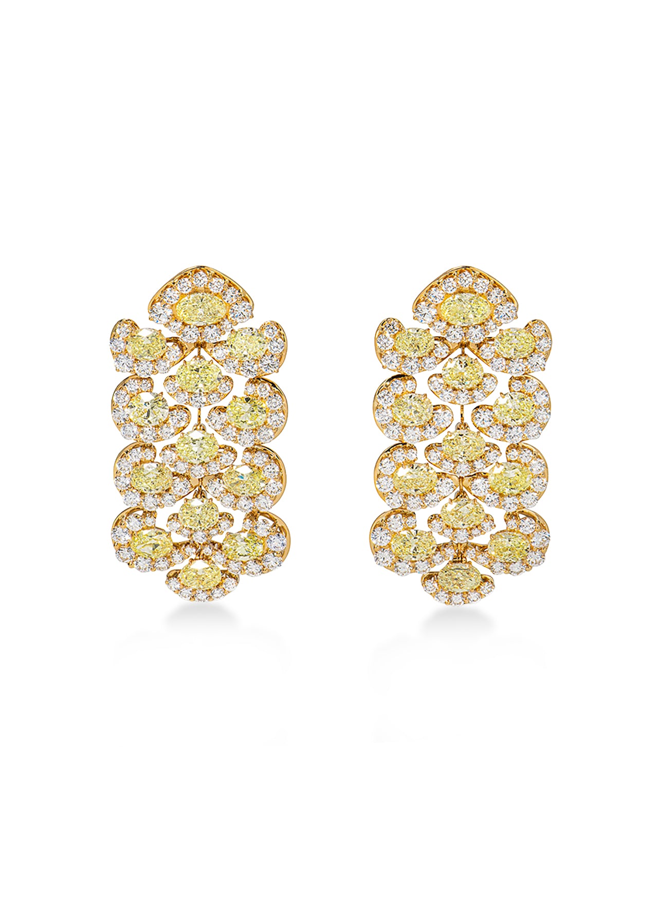 A radiant celebration of light and movement, the Girasole Earrings showcase a cascading array of oval Fancy Light Yellow diamonds, set in gleaming yellow gold and accented by brilliant white diamonds. The floral-inspired silhouette captures both elegance and exuberance in every facet.