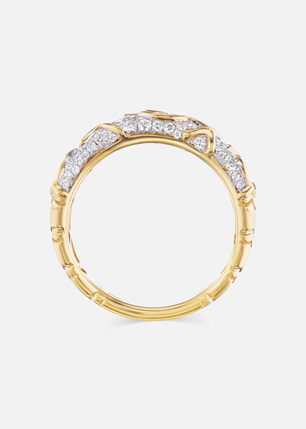 Elegant and easy to wear, the Ondine Band flows with sculptural curves in 18K yellow gold, accented by 0.5 cts of pavé diamonds. A graceful piece with everyday allure.