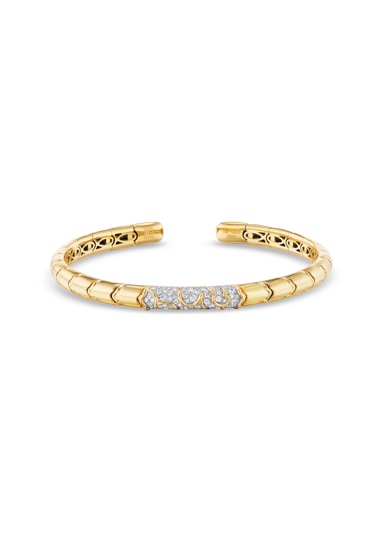 Sleek and understated, the Ondine Bangle features a whisper of pavé diamonds set in sculpted 18K yellow gold. Lightweight yet refined, it offers effortless everyday elegance.