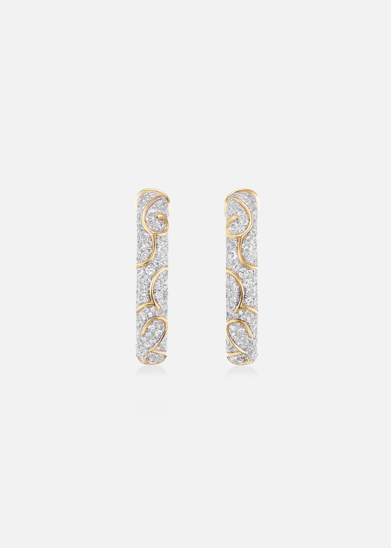 Delicate in scale but rich in detail, the Ondine Petite Hoop Earrings shimmer with pavé diamonds set in sculpted 18K yellow gold. Perfectly proportioned for everyday elegance.
