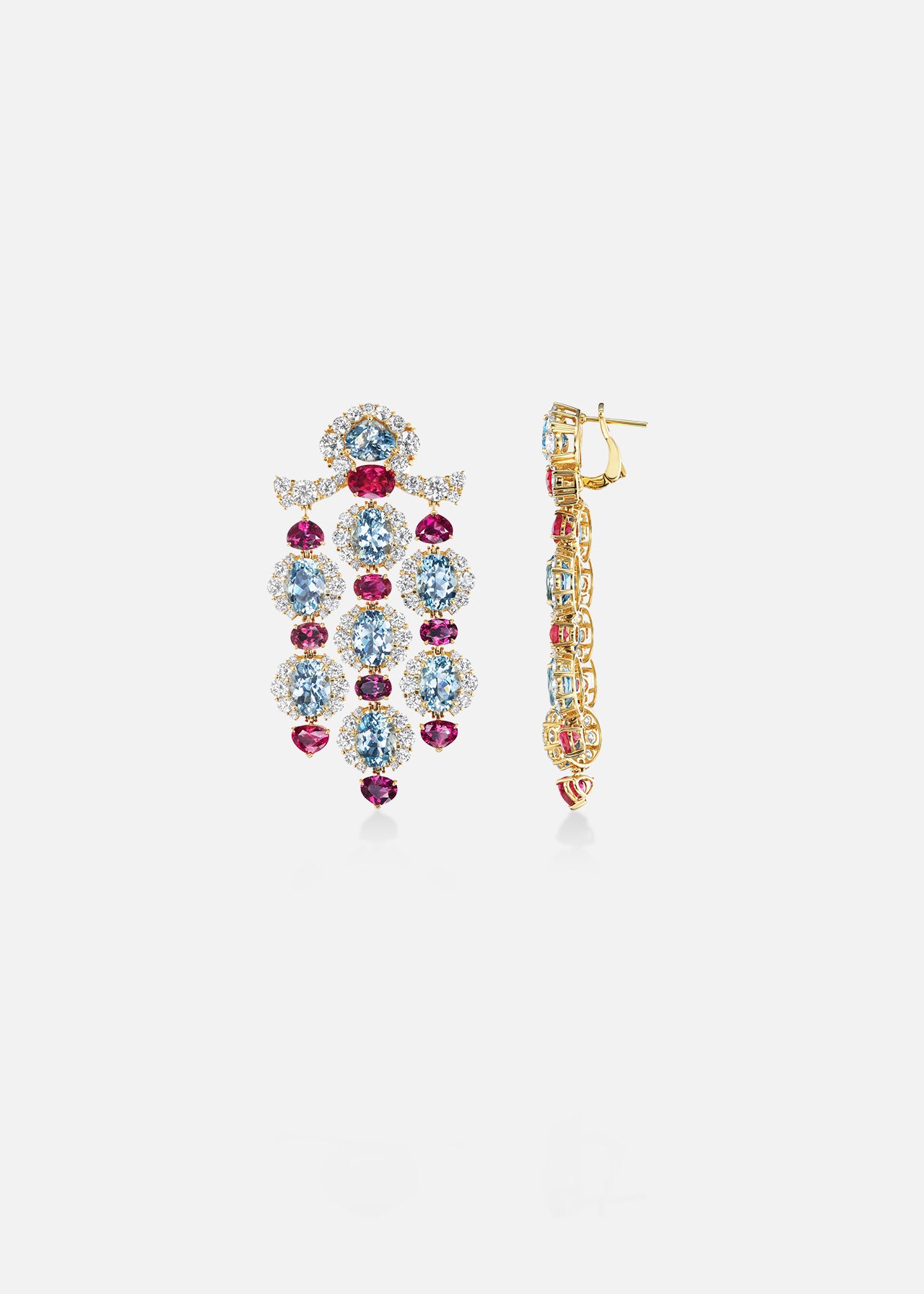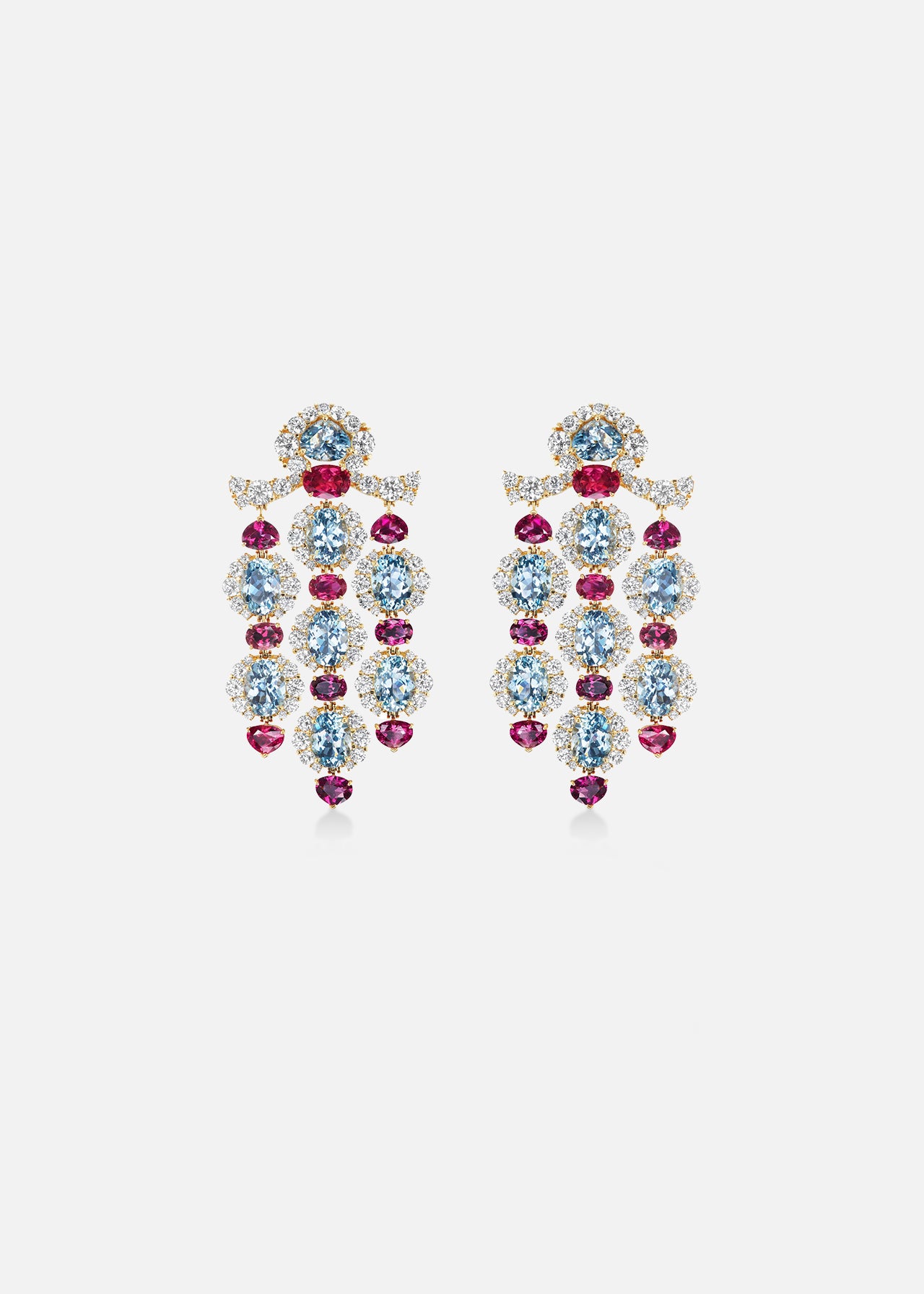 Bold, cascading, and utterly breathtaking—the Shirine Earrings make a statement in every sense. With vibrant rubellites, tranquil aquamarines, and a lavish diamond surround, these drop earrings are a testament to Marina B’s extraordinary craftsmanship.