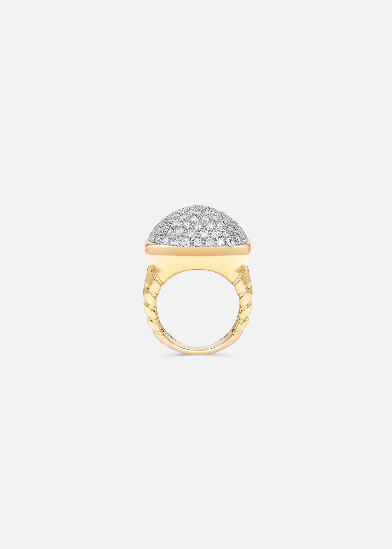 A dazzling statement ring paved with 1.83cts of brilliant white diamonds, set in gleaming 18K yellow gold. Radiating brilliance, this luxurious design is perfect for bold glamour and timeless style.