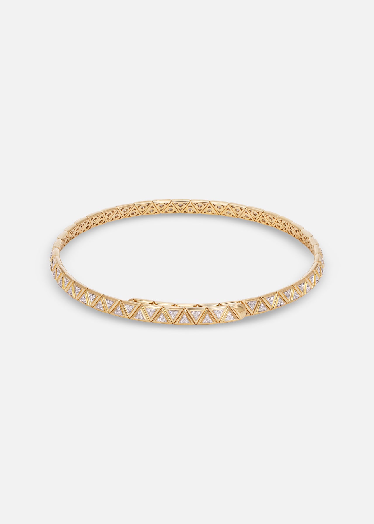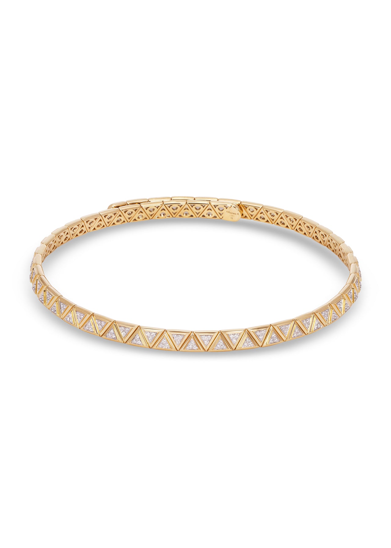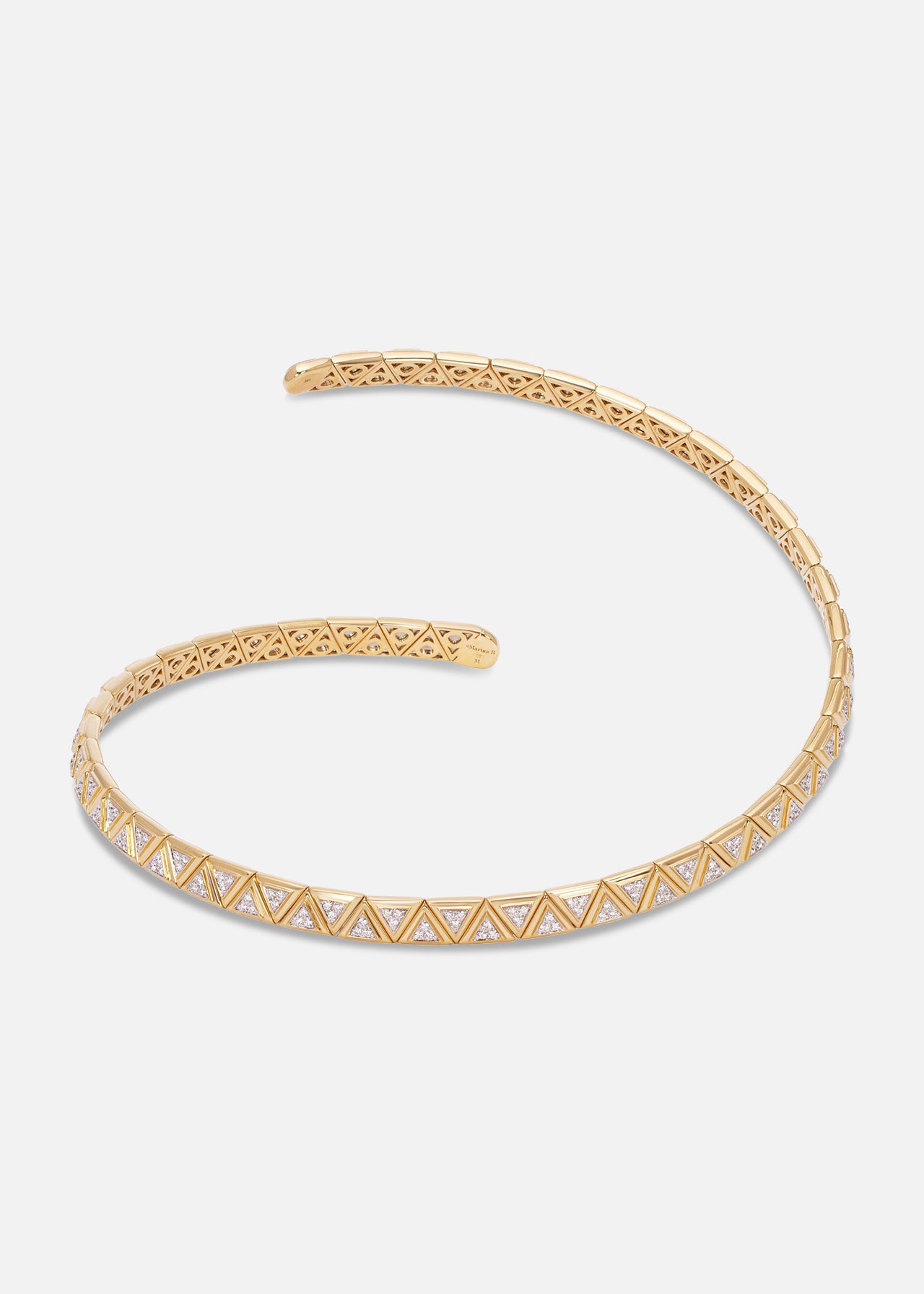 A bold evolution of the signature Triangolini silhouette. This striking choker is meticulously set with 1.90 carats of pavé diamonds along the iconic pyramid pattern in 18K yellow gold. Sculptural yet refined, it's an essential piece for collectors of modern fine jewelry.