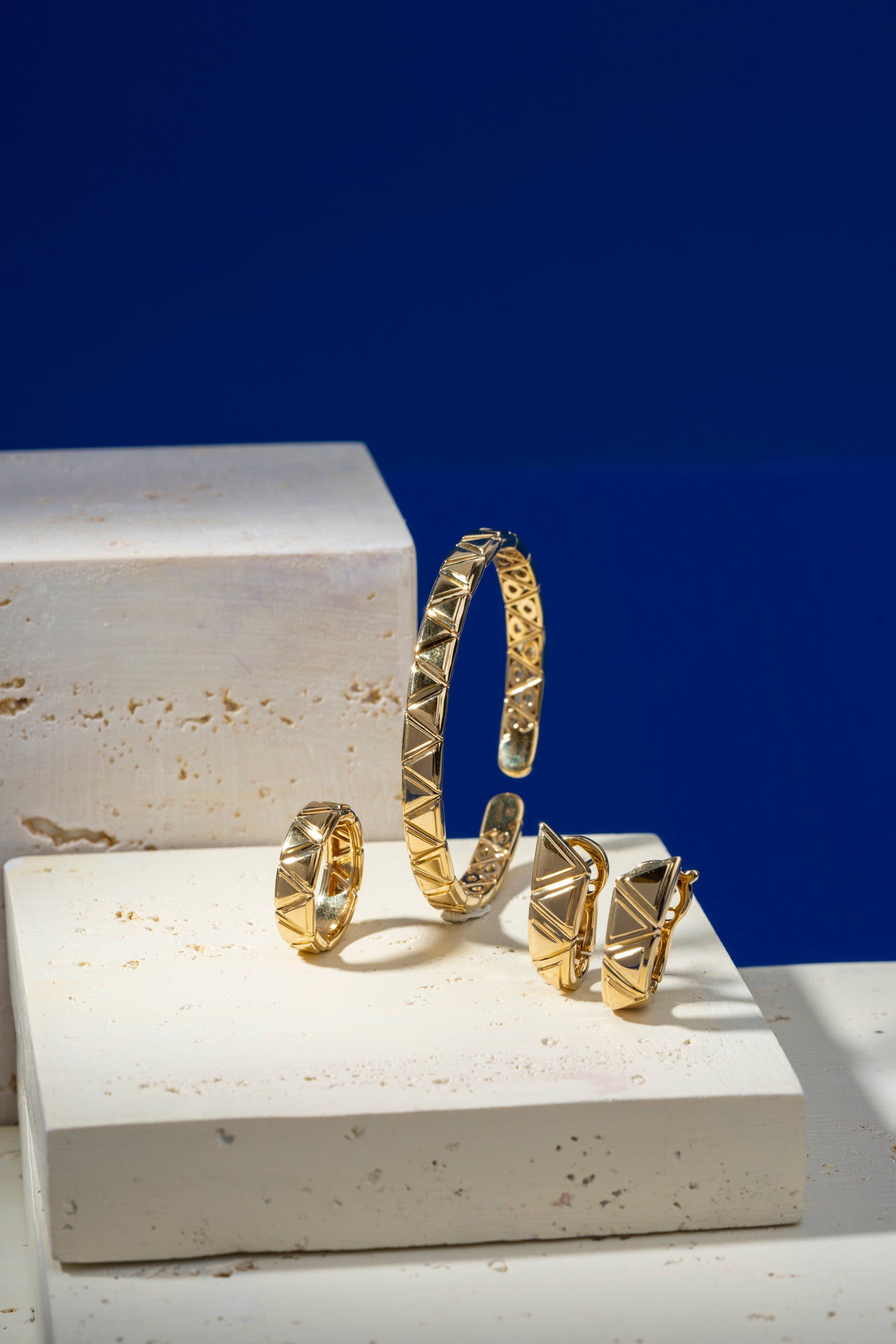 An iconic design reimagined with bold geometry, this 18K yellow gold ring from the Triangolini collection adds a sculptural touch to your everyday elegance. Designed with Marina B’s signature triangular motifs for a statement that’s both playful and refined.