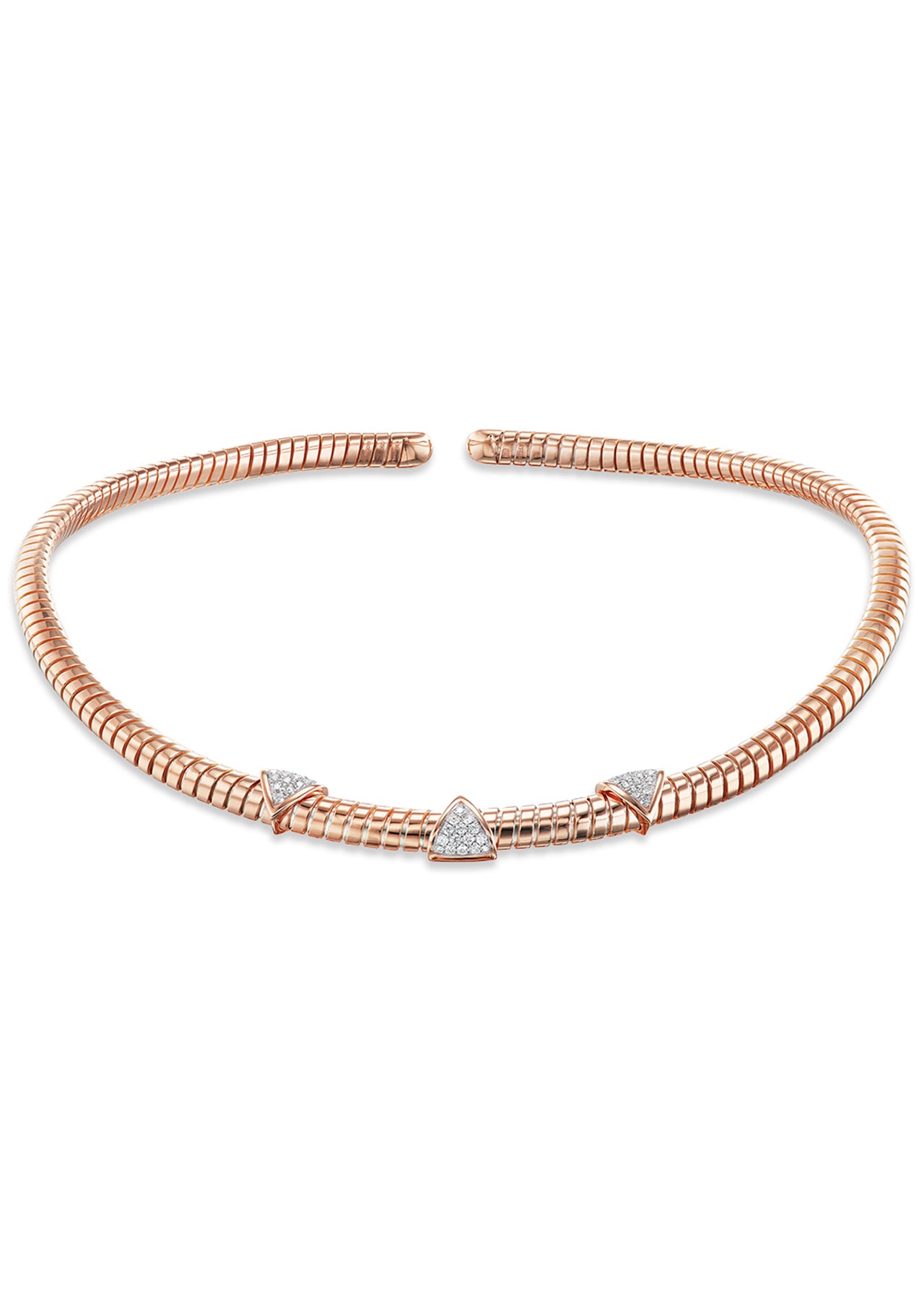 An exquisite statement of elegance, the Trisolina Three Claws Collar showcases 0.42ct pavé-set diamonds, artfully arranged within its distinctive triple-claw design. Crafted in warm 18K rose gold, this collar embodies refined sophistication with a modern edge.