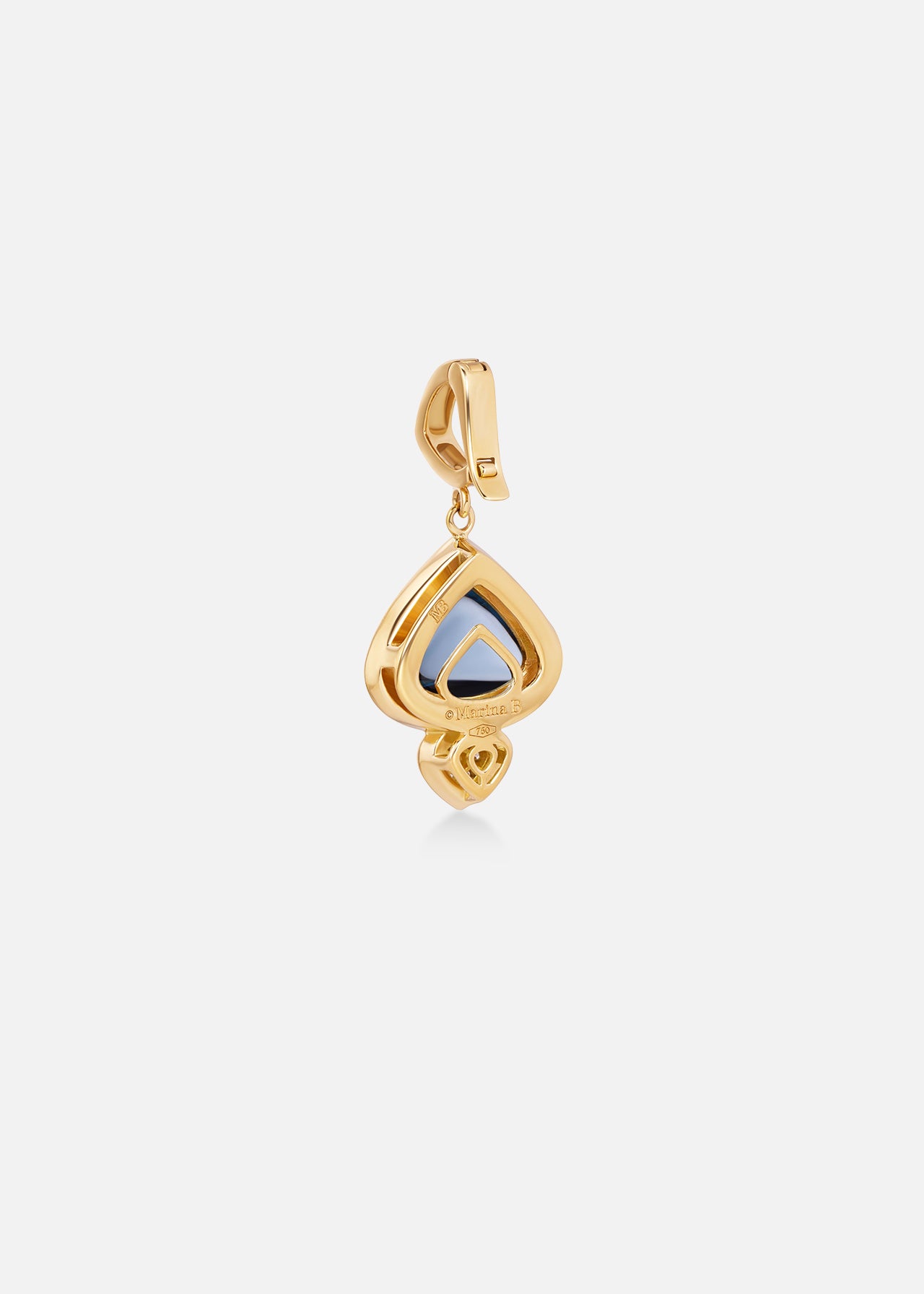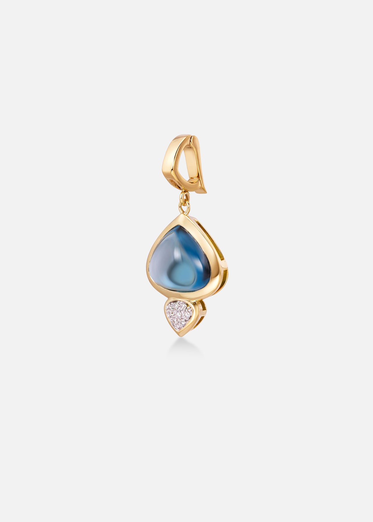 Luminous cabochon topaz (5.34cts) radiates oceanic blue, accented by 0.06cts pavé diamonds in warm 18K yellow gold. A modern drop with captivating color and effortless sophistication.